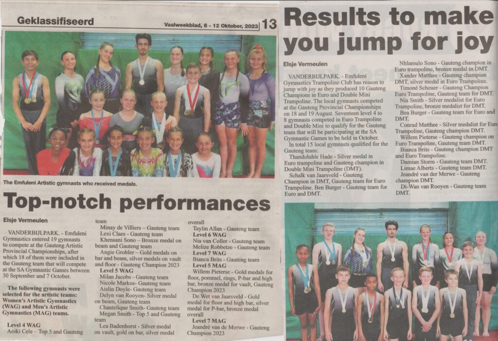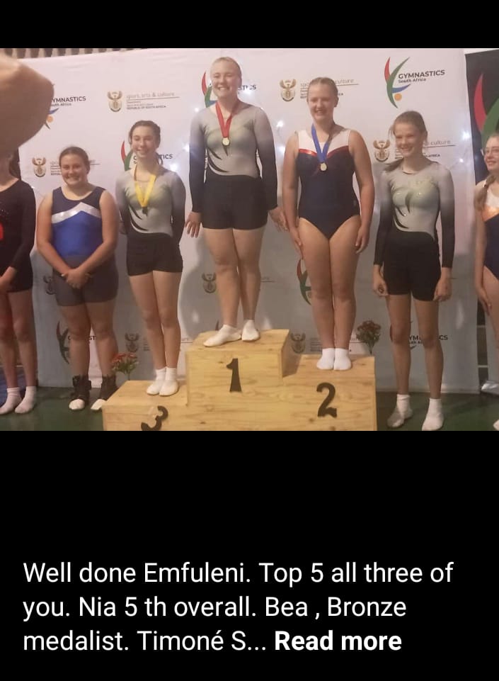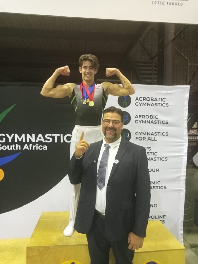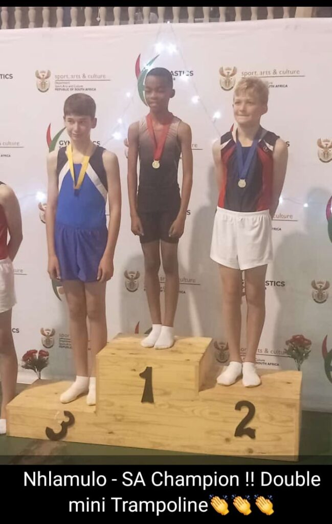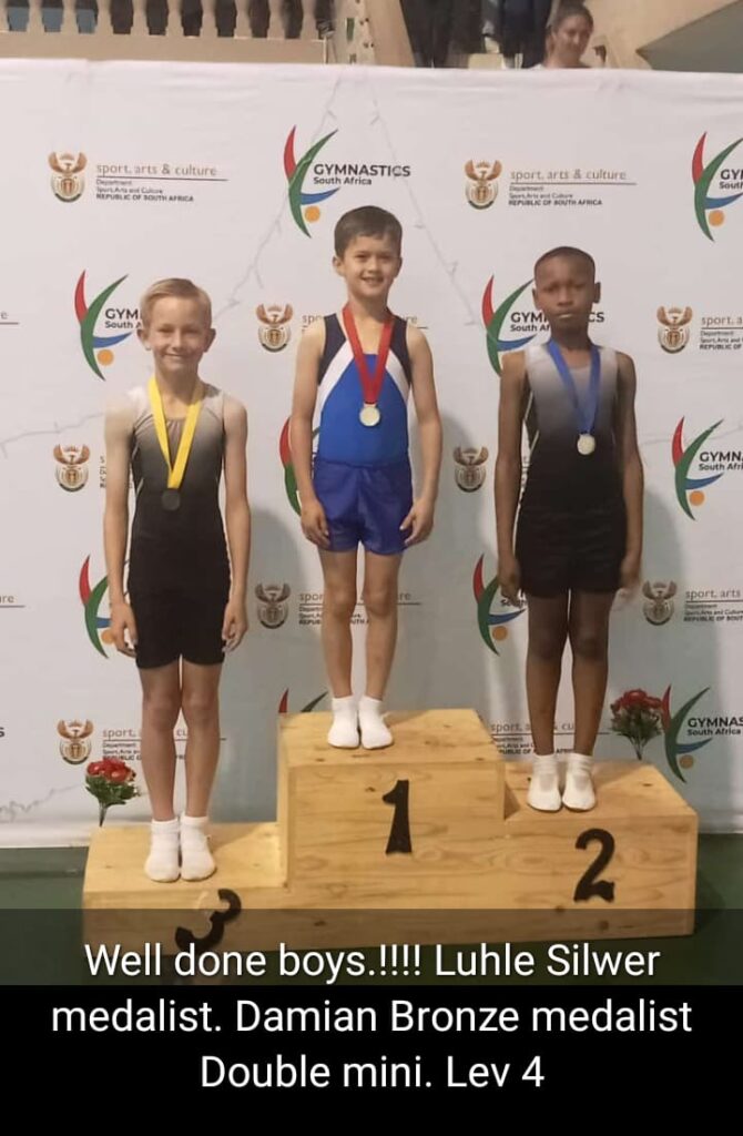 ALLOW US TO SHOW OFF OUR AMAZING GYMNASTS AND THEIR ACHIEVEMENTS JeandrĂ© van der Merwe De Wet van Jaarsveld Aioki Cele – SA Gymgames Silver Medalist on Floor